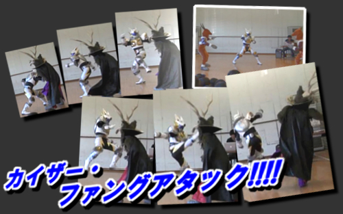 おいしいジビエ料理になって出直して来い!って事で、ザコタンは軽〜く蹴散らして、鹿間さんには今回も必殺のカイザー・ファングアタックでフィニッシュだ!