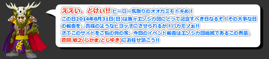 ならば、エゾシカ団総統であるこの吾輩が、我々の式典とも言うべきこのイベントで挨拶しないワケにはいくまい?