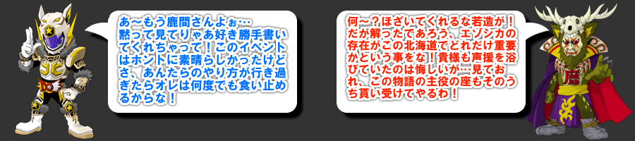 うぬぬ…どうせならエゾシカ団の完全勝利でこのイベントを飾りたかったところだが、あと一歩のところで水を差されたおかげで一気に形勢を逆転されおったわ!