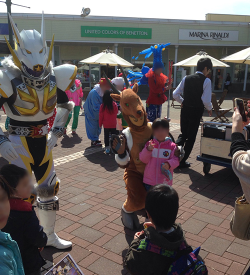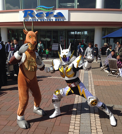 この日はレラ開業10周年記念ってコトで、いつものショーではないんだけど、地域のゆるキャラ達と一緒にキャラクターパレードに参加してきたぜ。モールの中を練り歩いて、お客さん達と触れ合ったり写真撮ってもらったりする、いわゆる「グリーティング」ってやつだ。